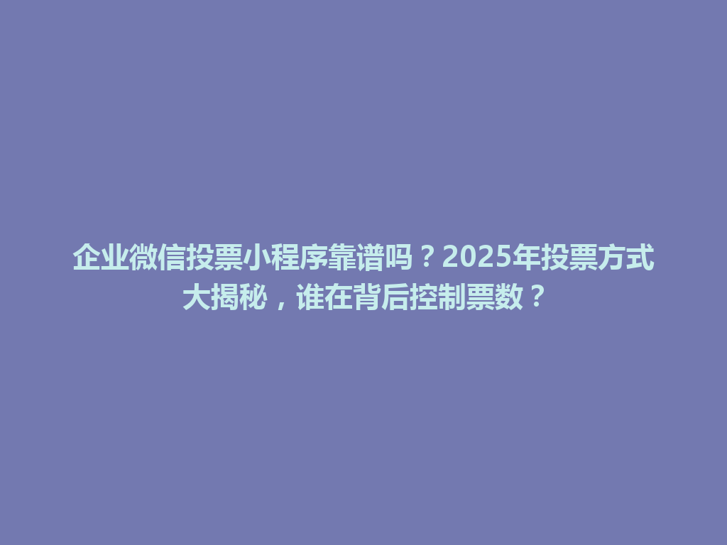 豆包网 微信 茂县企业微信投票小程序靠谱吗?2025年投票方式大揭秘,谁在背后控制票数?